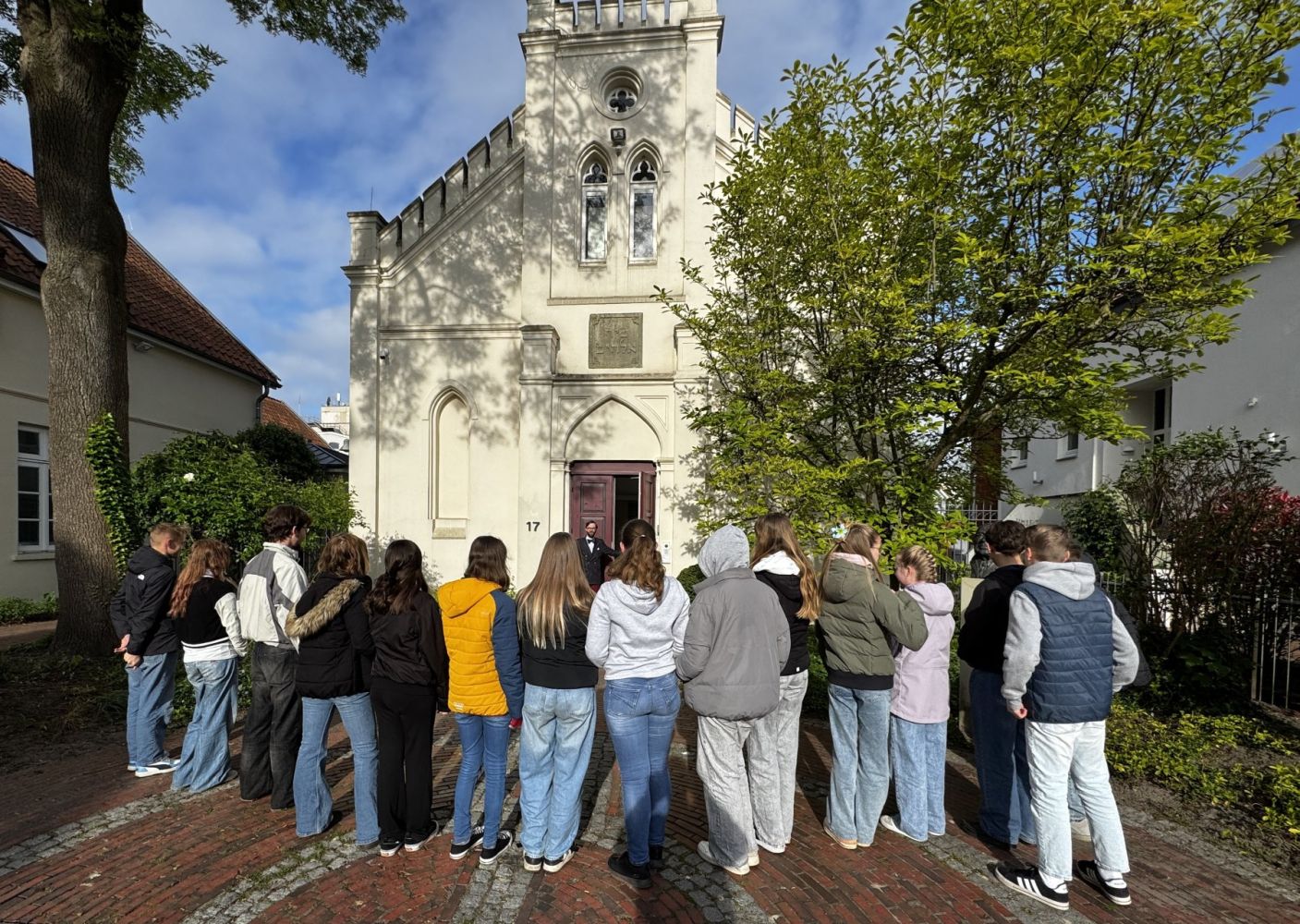 Am 6. Mai 2025 besuchte der Wahlpflichtkurs „Kulturelles und interkulturelles Lernen“ des 7. Jahrgangs von Herrn Stöltje gemeinsam mit dem FSJler Giovanni die jüdische Gemeinde in Oldenburg.
