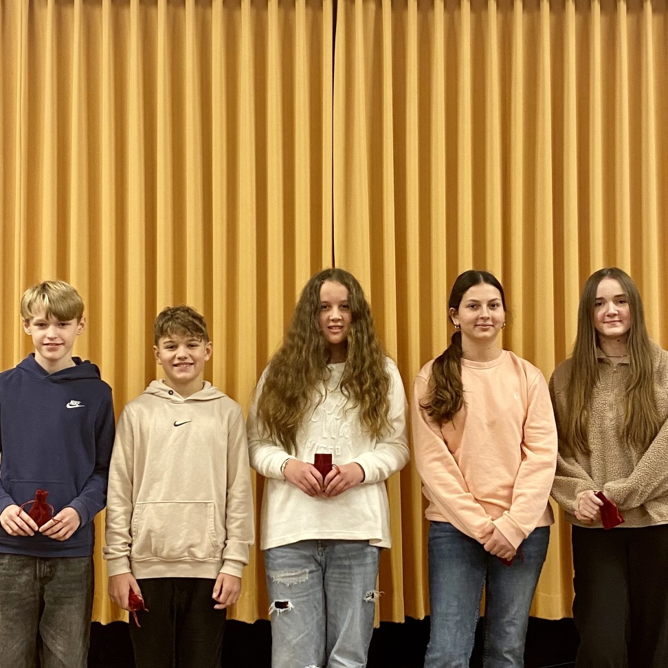 3 Schülerinnen und 2 Schüler hatten sich zuvor in ihren Klassen für diese Runde qualifiziert: Marta und Henri aus der 6a, Lilly und Max aus der 6b und Charlotte aus der 6c. In den Herbstferien hatten sich alle Schülerinnen und Schüler des 6. Jahrgangs für ein Buch entschieden und gelesen. In den darauf folgenden Schulwochen bereiteten sie sich auf das Vorlesen vor und schließlich wurden die Klassensieger in jeder Klasse ermittelt.