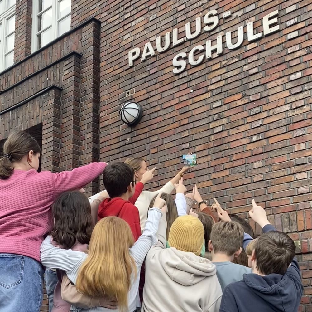 Die kleine Biene fliegt aufgeregt herum und sucht ihren Bienenstock im Schulgarten. Dabei entdeckt sie viel Spannendes in der Paulus-Schule...