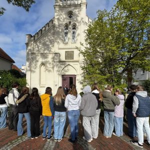 Am 6. Mai 2025 besuchte der Wahlpflichtkurs „Kulturelles und interkulturelles Lernen“ des 7. Jahrgangs von Herrn Stöltje gemeinsam mit dem FSJler Giovanni die jüdische Gemeinde in Oldenburg.